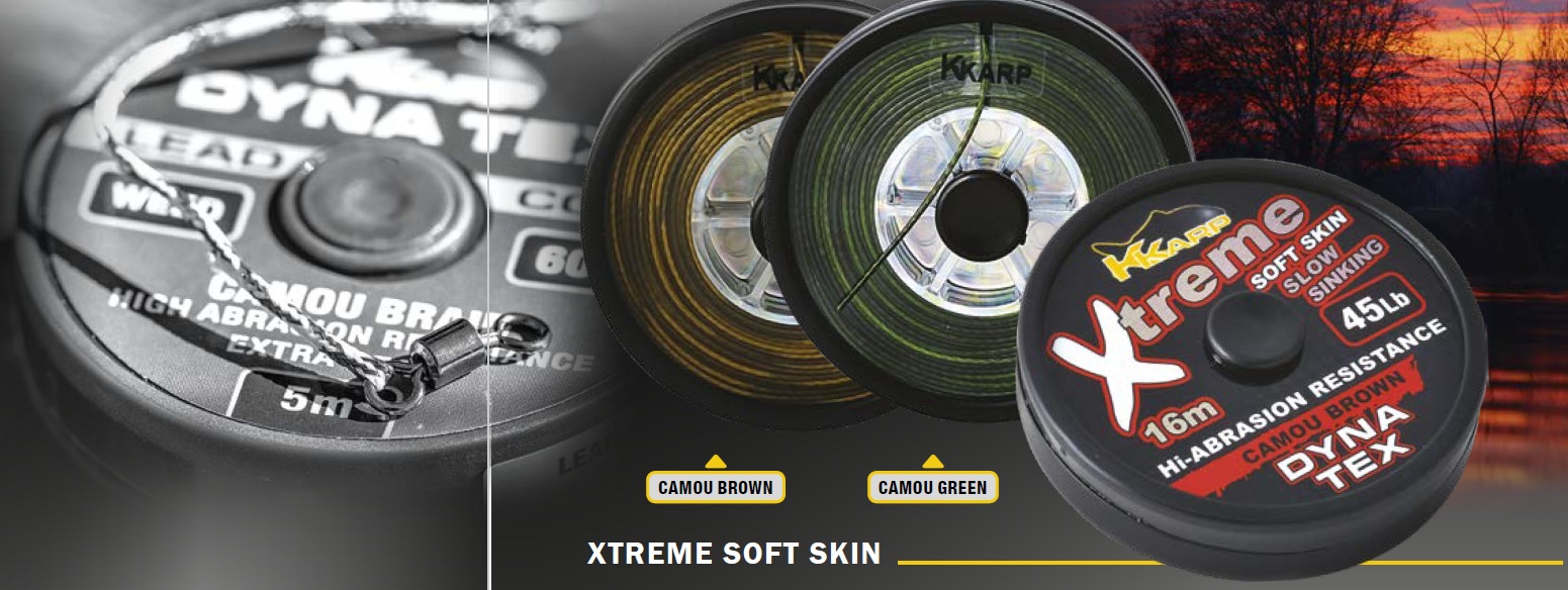 K-KARP DT XTREME SOFT -Ланка з високою стійкістю до стирання покриттям та м'яким внутрішнім плетеним сердечником з 8 ниток, сплетеним з надзвичайно міцних волокон, що забезпечує чудову міцність вузла та надійність, а також круглий профіль. Надзвичайно гнучка та гладка, що повторює контури дна озера, покращуючи презентацію приманки для обережного коропа, легко зав'язується, не пошкоджуючи її. Чудовий універсальний пристрій, доступний у двох кольорах камуфляжу з низькою видимістю.