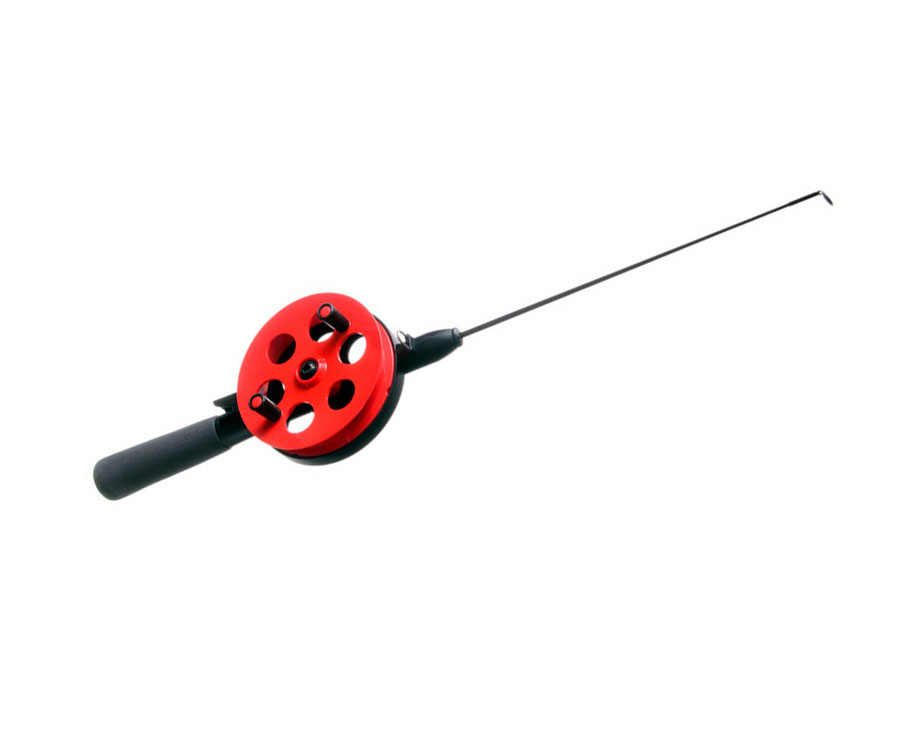 Зимова вудка з вбудованою котушкою-, ідеальний вибір для любителів зимової риболовлі. Призначена для лову хижака з льоду на блешні, балансири та інші  приманки. Вудка і шпуля котушки виготовлені з ударостійкого та морозостійкого пластику, «тепла» неопренова ручка підвищує комфорт лову і має малу вагу.  Діаметр 45см.  Вона оснащена зручним фіксатором важеля, яким без проблем можна користуватися, не знімаючи рукавичок. Жорсткий та пружний склопластиковий хлистик знімається, що полегшує транспортування вудки. Хлист оснащений тюльпаном із вставкою з оксиду алюмінію.Довжина хлистика 19.5 см.Завдяки яскраво-червоному забарвленню шпулі вудка добре помітна на льоду.                                                                                                                              Характеристики: