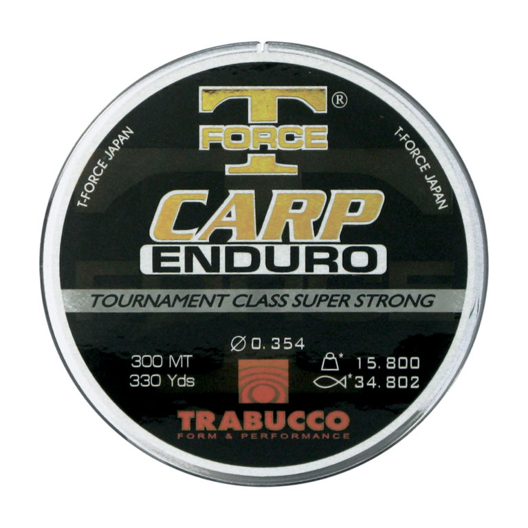 Жилка Trabucco T-Force Carp Enduro - оригінальна високоміцна волосінь на коропа, призначена для роботи в непростих умовах карпфішингу. Ця не дорога волосінь має дуже високі характеристики, у тому числі чудово пручається стирання, не знижуючи міцності тривалий час. Ця волосінь для лову риби придатна для більшості приватних та громадських водойм; в неї високі протиабразивні властивості, низька деформованість і відмінні властивості міцності. Особливо вдалося розробникам поєднання м'якості при підсіканні та пружності при виведенні, що практично не дає рибі шансів на схід, а висока швидкість притоплення не лякає навіть обережну рибу.