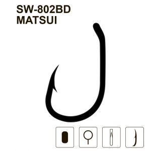 Гачок одинарний MiniMax Matsui SW-802BD – це серія моделей спеціалізованих пристроїв, призначених для коропового лову. Гачок розроблений за результатами численних досліджень під керівництвом кращих експертів у цій сфері. Гачок одинарний MiniMax Matsui SW-802BD має укорочену цівку, що орієнтоване для упіймання великих особин риб. Завдяки вилученим показникам пружності матеріалу, витримує опори найактивніших трофейних екземплярів. Особливості
